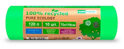 Пакеты для мусора биоразлагаемые 120 литров, 30 мкм, 10 шт, ПВД, зеленые
