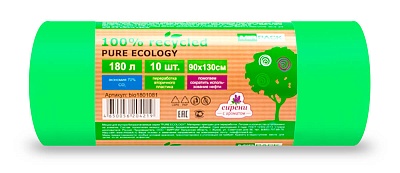 Мешки для мусора биоразлагаемые 180 литров 10 шт ПВД зеленые 40 мкм