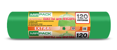 Мешки для мусора 120 литров, 14 мкм, ПНД, 10 шт. зеленые, 70х110 см, EXTRA