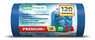 Мешки для мусора 120 литров, 30 мкм, 25 шт, ПСД, синие, 70x110 см, 2 слоя, Премиум