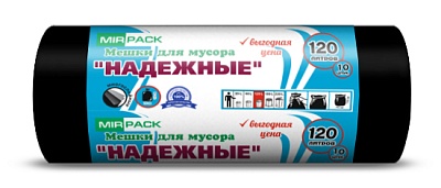 Мешки мусорные 120 л, 30 мкм, 10 шт. , ПВД, черные