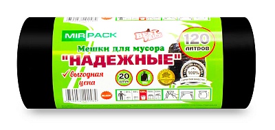 Мешки для мусора 120 литров, 25 мкм (материал ПСД, в рулоне 20 штук, 70x110 см) Надежные
