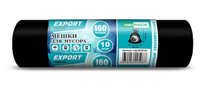 Мешки для мусора 160 литров 80 мкм, ПВД, 10 шт. черные, 93х110 см, серия «EXPORT»