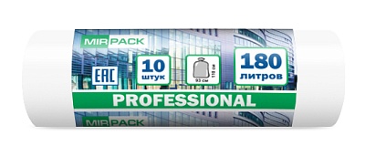 Мешки для мусора 180 л, 30 мкм, в рулоне 10 штук, ПВД, прозрачные, 2 слоя, 93х110 см, Professional