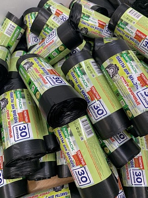 Мешки для мусора 30 л, 20 мкм, черные, ПСД, с ароматом свежести, прочные (в рулоне 20 шт, 50х60 см) Мирпак