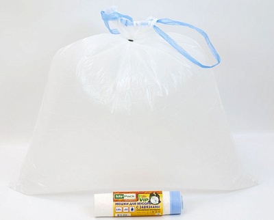 Мешки для мусора с завязками 120 л. 15 мкм, 10 шт. ПНД, белые