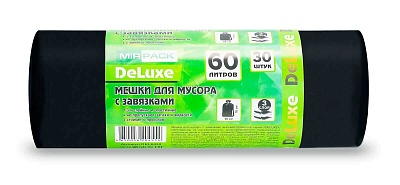 Мешки для мусора 60 л с завязками, 35 мкм, 30 шт. ПСД, 3 слоя, особопрочные, черные- для дома.