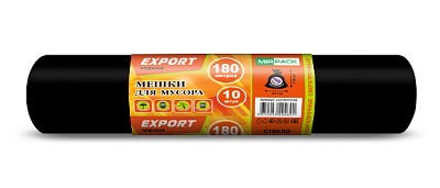 Мешки для строительного мусора 180 л, 80 мкм, ПВД, 10 шт, двухслойные, размер 93х110 см, черные, EXPORT