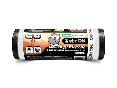 Пакеты для мусора с завязками 35 литров, 20 шт. ПСД, 35 мкм, полосатые, ZebrOK